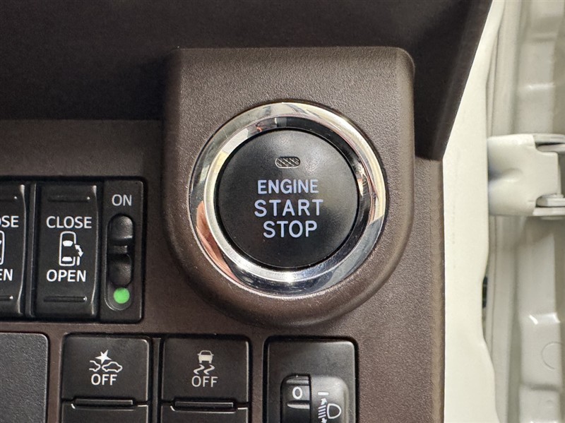 エンジンスタートボタンです。キーが車内にあれば、エンジンの始動・停止はブレーキを踏んでスイッチを押すだけ!キーを取り出す手間を省き、ワンプッシュでエンジンを操作するので簡単でスムーズです。