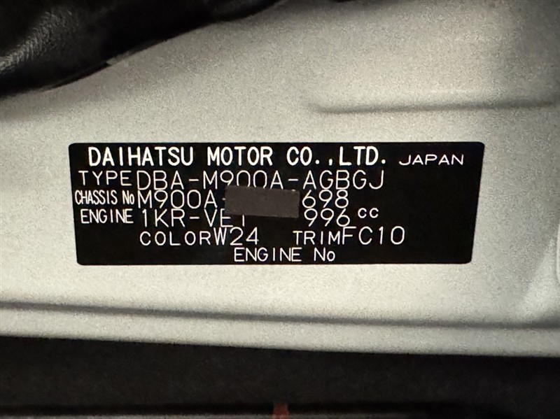 車台番号(下3桁)【698】