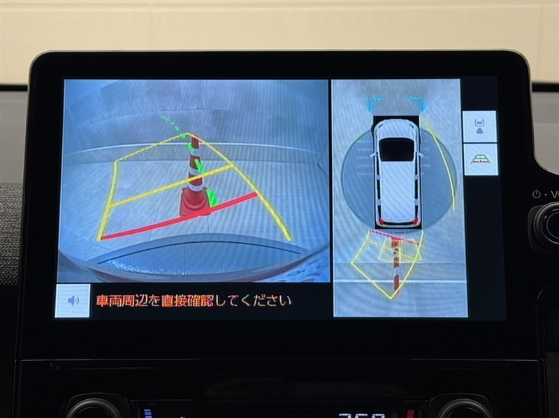 真上から見下ろしたような視点で車とその周囲を確認出来る画面と、車両後方を映し出すバックモニター画面の2つを表示してくれます。