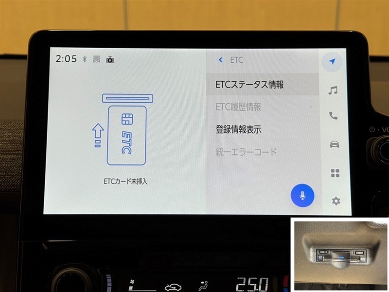 ディスプレイオーディオ連動のETC付きです。高速道路料金所での小銭の出し入れや雨天時における窓の開け閉めなどの煩わしさが解消できます。料金所の通過もスムーズで快適ですよ。