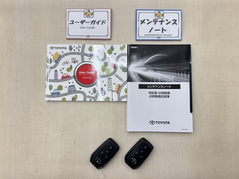 基本操作はもちろん、最近の車は装備もどんどん進化しているので困った時に役立つユーザーガイドと、整備歴が確認できるメンテナンスノートが付いてます。安心ですね☆☆