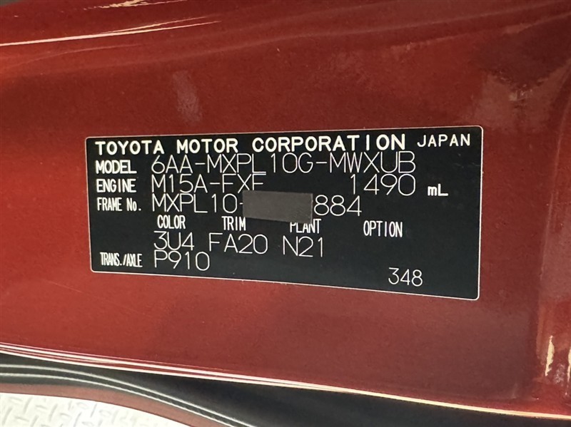 車台番号(下3桁)【884】