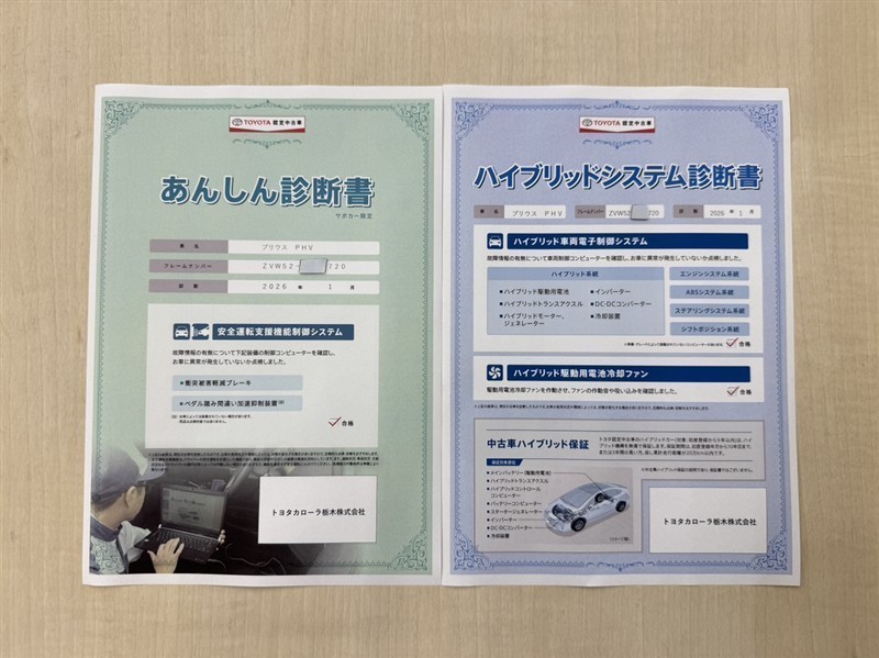「サポカーあんしん診断」「ハイブリットシステム診断」実施済み。安心安全にお乗り頂けるようトヨタ専用診断機器で綿密にシステムを点検しています。