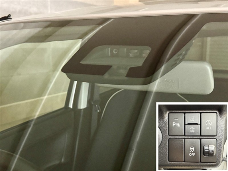 衝突被害軽減ブレーキに加え、ペダル踏み間違い急発進抑制装置等を搭載した「サポカーS」です。安全機能の詳細はスタッフまでおたずねください。機能を過信せず、必ずご自身で安全運転を行ってください。