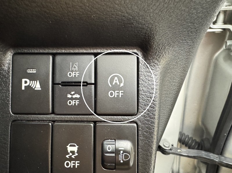 アイドリングストップ機能OFFスイッチです。エアコンを使用している時や、街中など停止や右左折が多い道を走る時など一時的にOFFに出来ます。