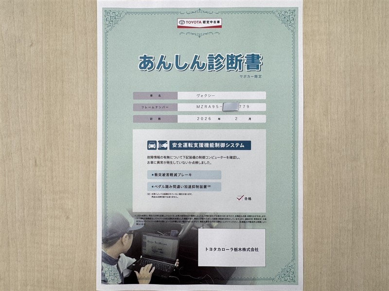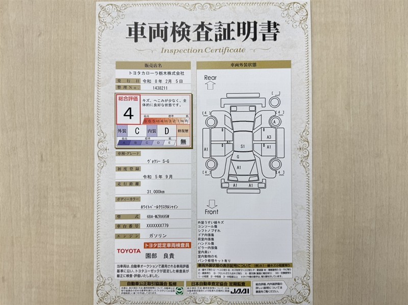 トヨタ自動車が認定した検査員が、厳正に検査した車両検査証明書を発行しています。キズの程度や場所を展開図で分かりやすく表示しているのでおクルマの状態がすぐ分かります。