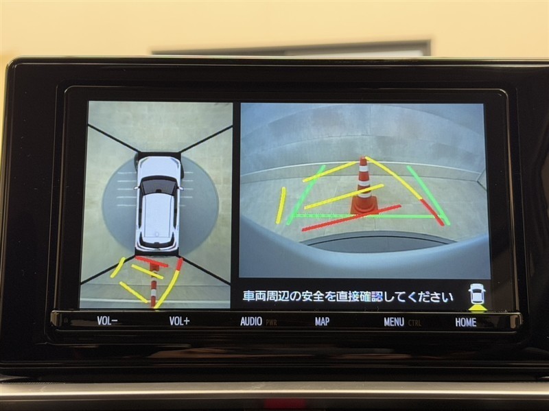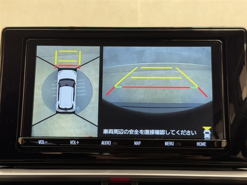真上から見下ろしたような視点で車とその周囲を確認出来る画面と、車両後方を映し出すバックモニター画面の2つを表示してくれます。