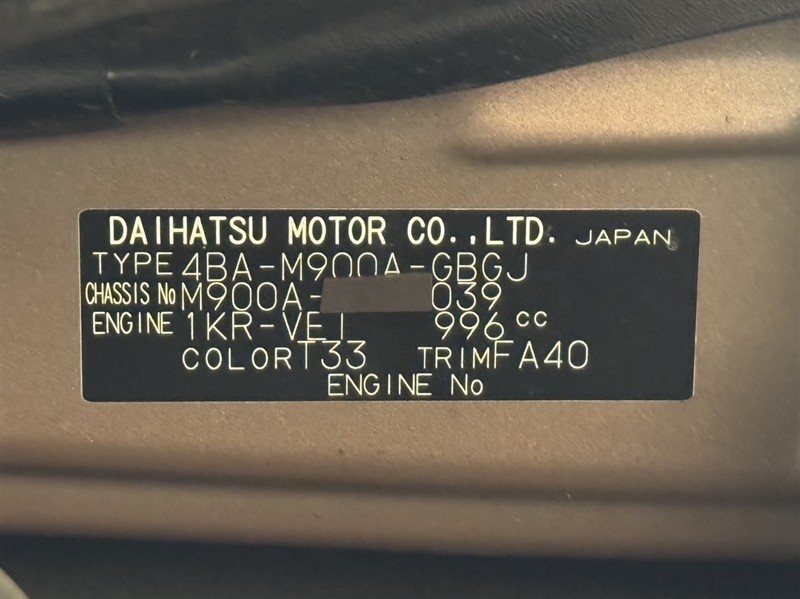 車台番号(下3桁)【039】