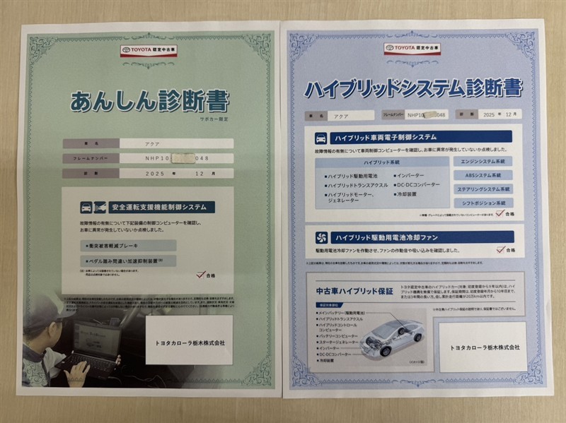 「サポカーあんしん診断」「ハイブリットシステム診断」実施済み。安心安全にお乗り頂けるようトヨタ専用診断機器で綿密にシステムを点検しています。