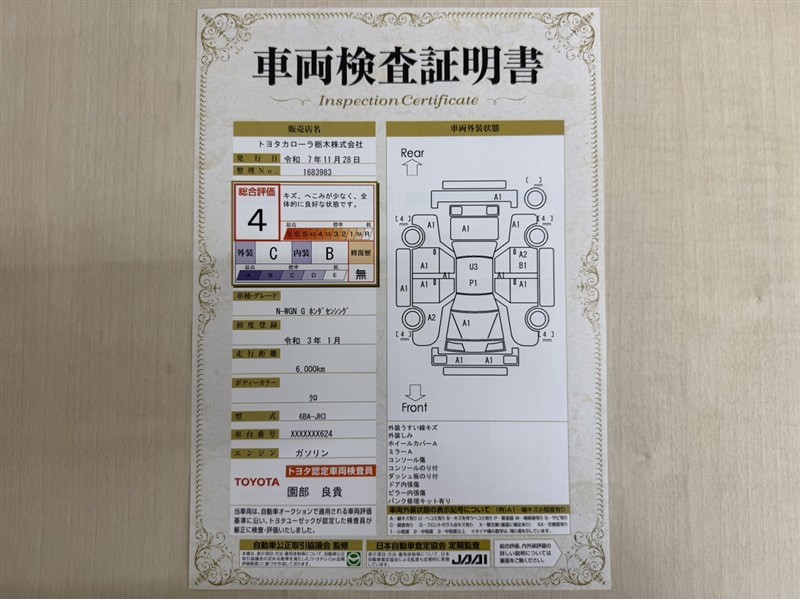 車台番号(下3桁)【624】