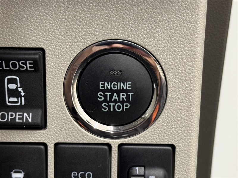 エンジンスタートボタンです。キーが車内にあれば、エンジンの始動・停止はブレーキを踏んでスイッチを押すだけ!キーを取り出す手間を省き、ワンプッシュでエンジンを操作するので簡単でスムーズです。