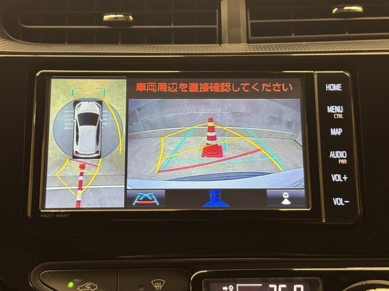 真上から見下ろしたような視点で車とその周囲を確認出来る画面と、車両後方を映し出すバックモニター画面の2つを表示してくれます。