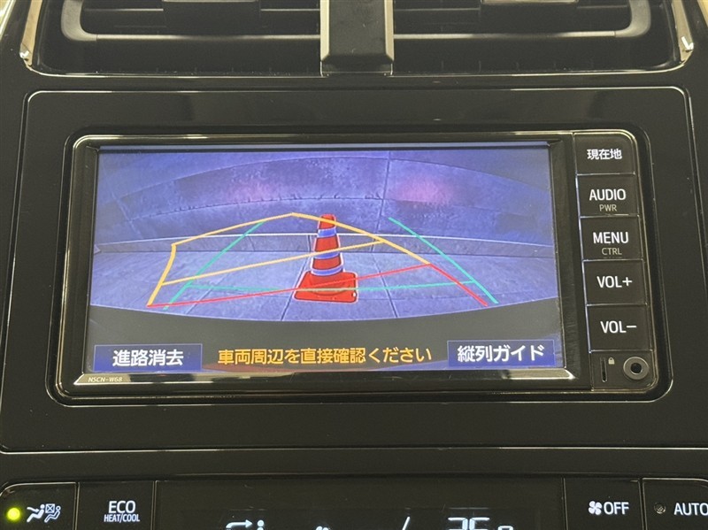 バックガイドモニター付きです。車の後方に小型カメラが付いており、バックする際の後方の様子をモニター上に表示します。