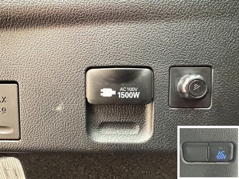 AC100V、1500Wのコンセントを車内に設置。アウトドアや駐車場で野外のコンセントとして利用できます。また、停電などの非常時にも使える便利な機能です!