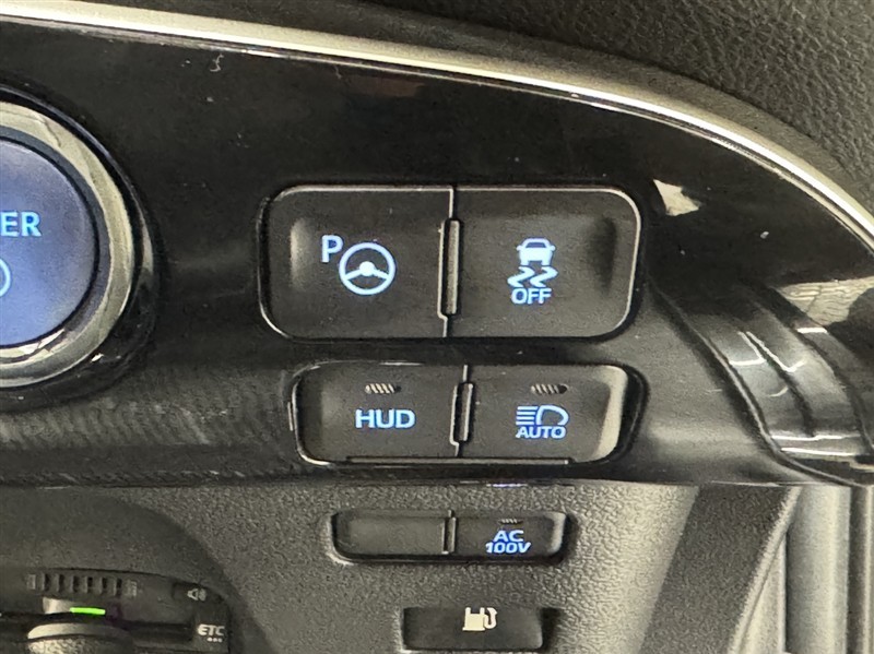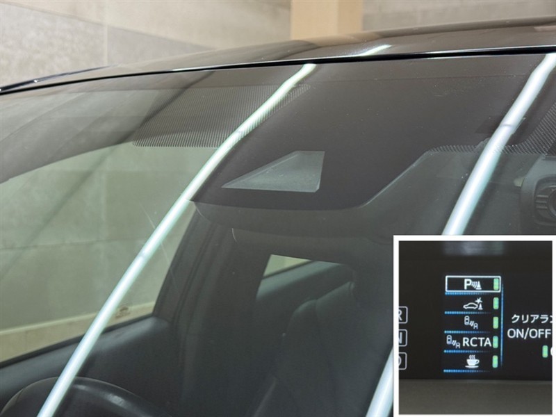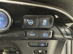 HUD=ヘディングアップディスプレイ。フロントガラス下部に速度やハイブリッドシステムの走行状態などを映し出し、視線を余り動かすことなく確認出来ます。