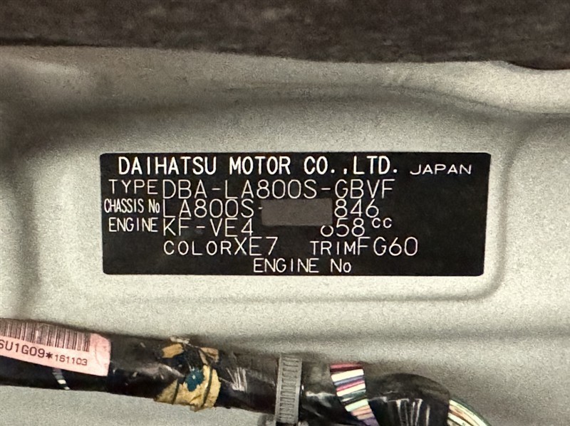 車台番号(下3桁)【846】