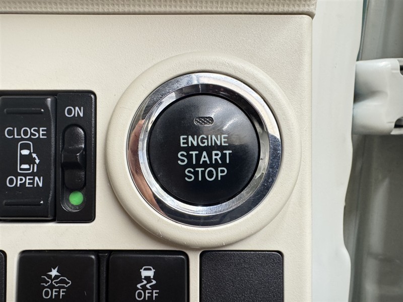 エンジンスタートボタンです。キーが車内にあれば、エンジンの始動・停止はブレーキを踏んでスイッチを押すだけ!キーを取り出す手間を省き、ワンプッシュでエンジンを操作するので簡単でスムーズです。