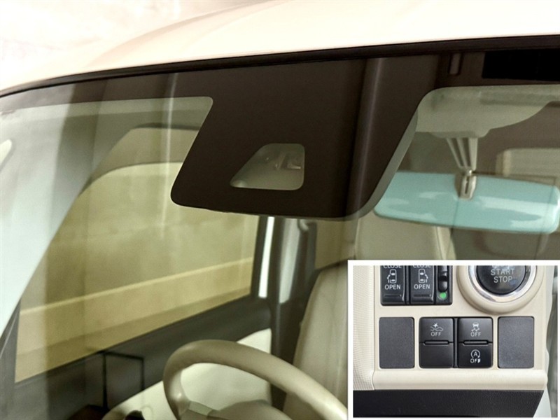 衝突被害軽減ブレーキに加え、ペダル踏み間違い急発進抑制装置等を搭載した「サポカーS」です。安全機能の詳細はスタッフまでおたずねください。機能を過信せず、必ずご自身で安全運転を行ってください。