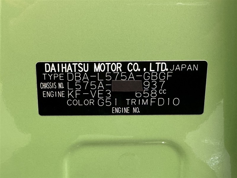 車台番号(下3桁)【937】