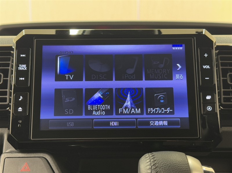 ステアリングスイッチ搭載!手を離さずに手元のスイッチでさまざまな操作が可能。運転中、視線をそらさなくても操作ができて安全です!