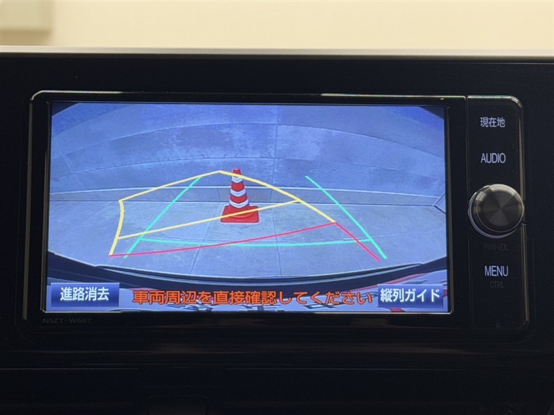 バックガイドモニター付きです。車の後方に小型カメラが付いており、バックする際の後方の様子をモニター上に表示します。