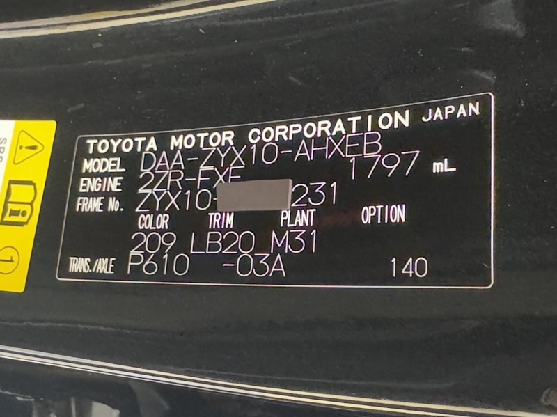 車台番号(下3桁)【231】