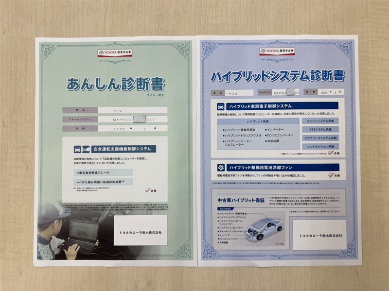 「サポカーあんしん診断」「ハイブリットシステム診断」実施済み。安心安全にお乗り頂けるようトヨタ専用診断機器で綿密にシステムを点検しています。