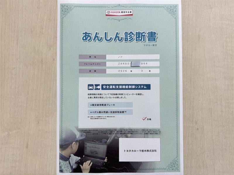 トヨタ自動車が認定した検査員が、厳正に検査した車両検査証明書を発行しています。キズの程度や場所を展開図で分かりやすく表示しているのでおクルマの状態がすぐ分かります。