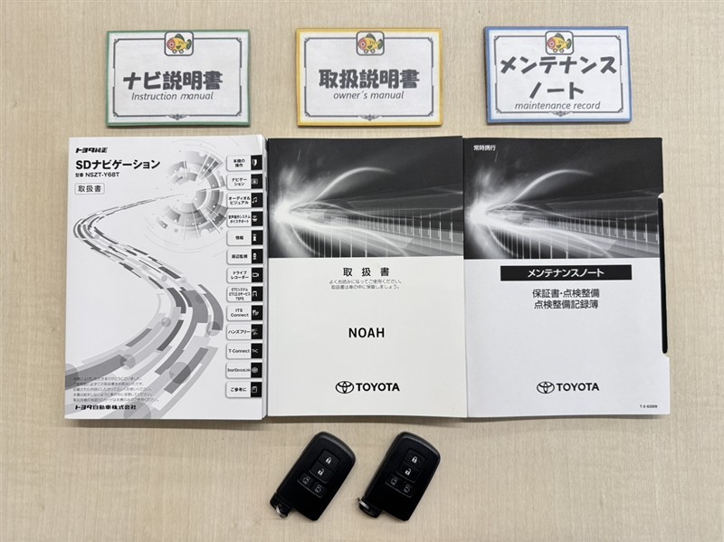 基本操作はもちろん、最近の車は装備もどんどん進化しているので困った時に役立つ取扱説明書、整備歴が確認できるメンテナンスノートが付いてます。安心ですね☆☆