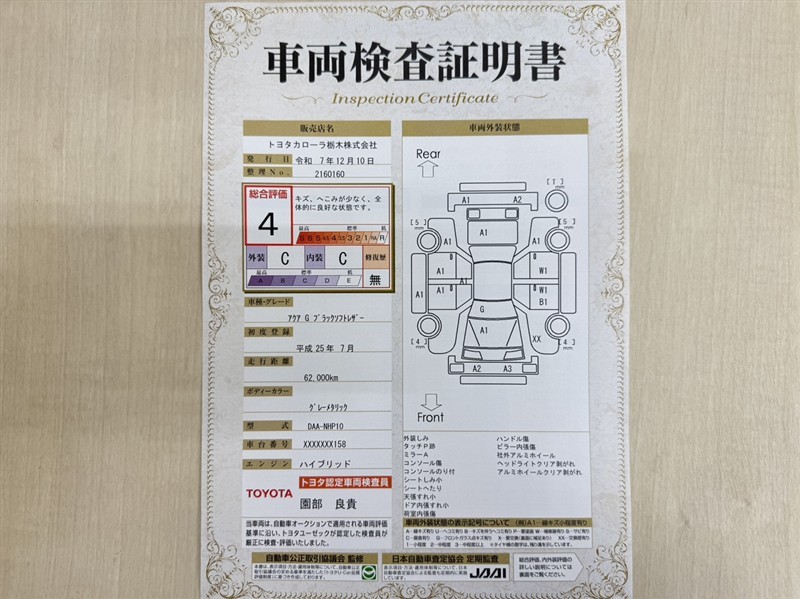 トヨタ自動車が認定した検査員が、厳正に検査した車両検査証明書を発行しています。キズの程度や場所を展開図で分かりやすく表示しているのでおクルマの状態がすぐ分かります。