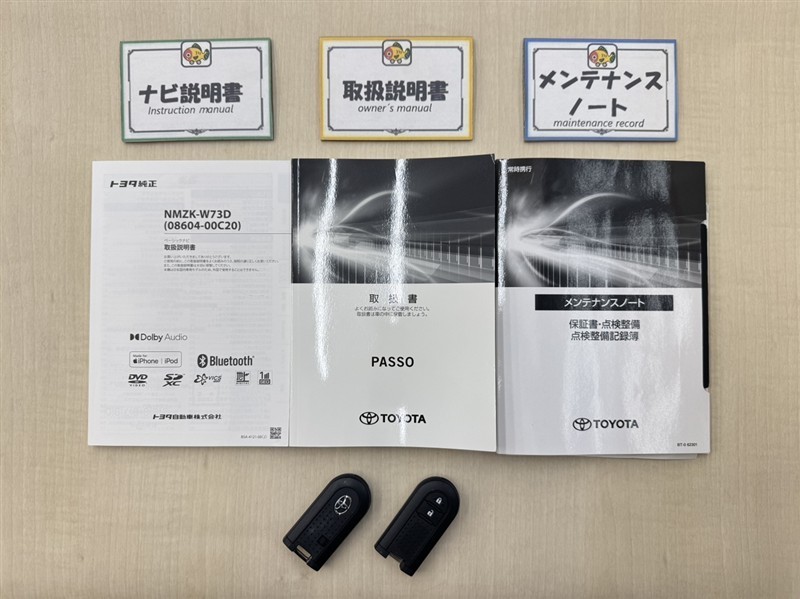 基本操作はもちろん、最近の車は装備もどんどん進化しているので困った時に役立つ取扱説明書、整備歴が確認できるメンテナンスノートが付いてます。安心ですね☆☆