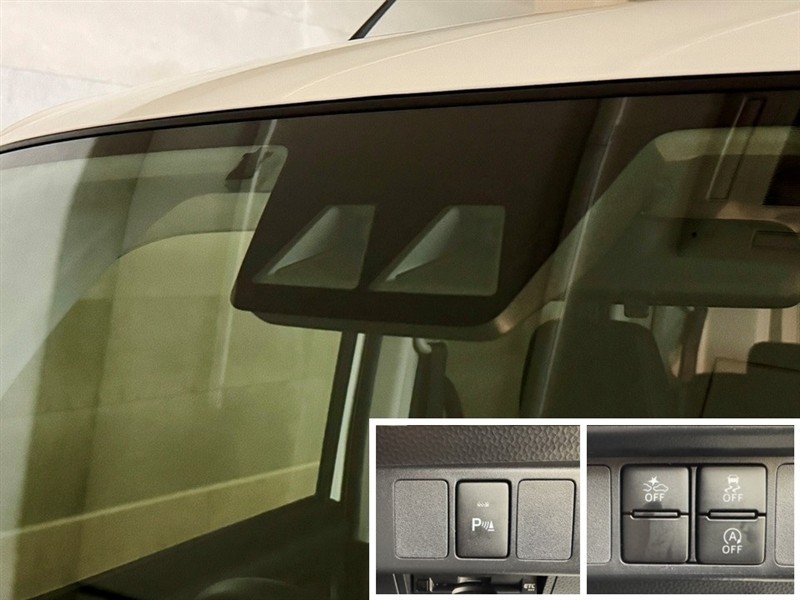 衝突被害軽減ブレーキに加え、ペダル踏み間違い急発進抑制装置等を搭載した「サポカーS」です。安全機能の詳細はスタッフまでおたずねください。機能を過信せず、必ずご自身で安全運転を行ってください。