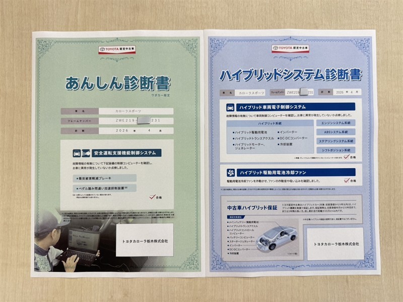 「サポカーあんしん診断」「ハイブリットシステム診断」実施済み。安心安全にお乗り頂けるようトヨタ専用診断機器で綿密にシステムを点検しています。