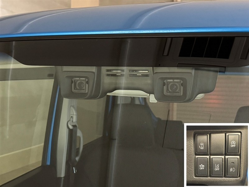 衝突被害軽減ブレーキに加え、ペダル踏み間違い急発進抑制装置等を搭載した「サポカーS」です。安全機能の詳細はスタッフまでおたずねください。機能を過信せず、必ずご自身で安全運転を行ってください。