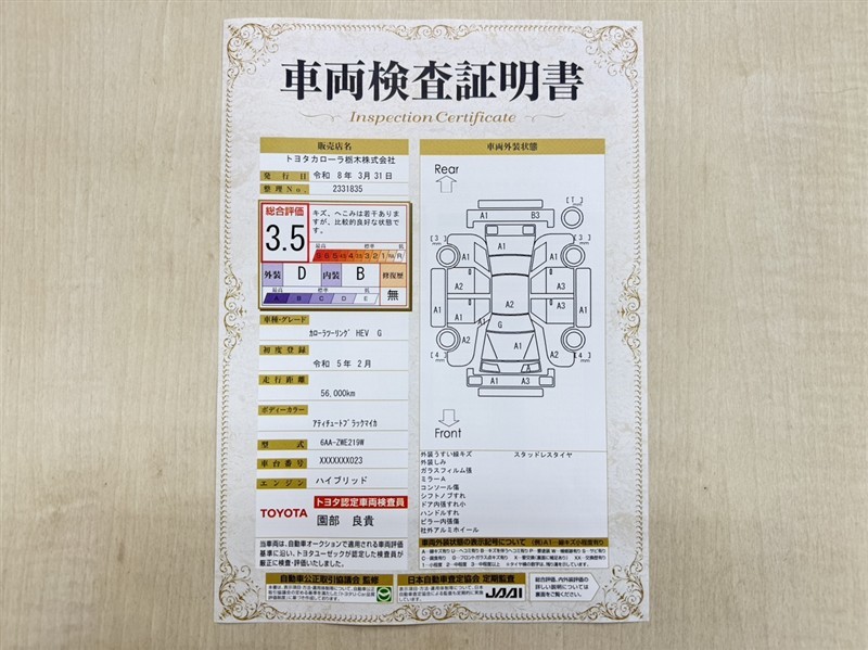 トヨタ自動車が認定した検査員が、厳正に検査した車両検査証明書を発行しています。キズの程度や場所を展開図で分かりやすく表示しているのでおクルマの状態がすぐ分かります。