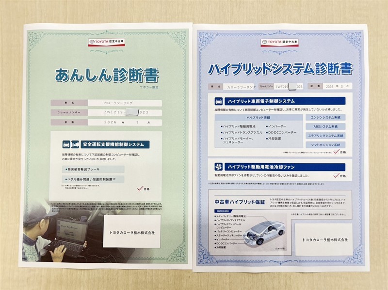 「サポカーあんしん診断」「ハイブリットシステム診断」実施済み。安心安全にお乗り頂けるようトヨタ専用診断機器で綿密にシステムを点検しています。