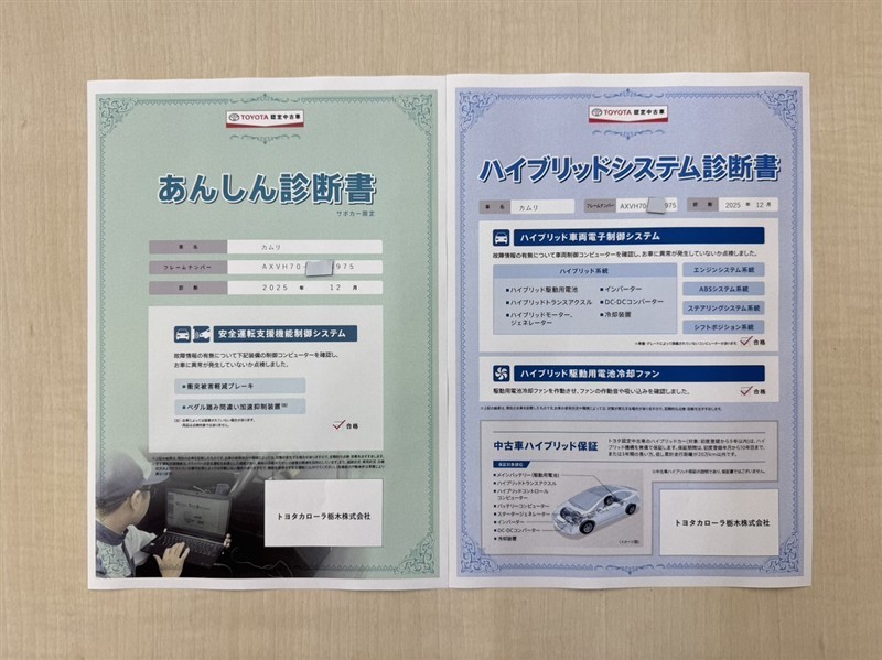 「サポカーあんしん診断」「ハイブリットシステム診断」実施済み。安心安全にお乗り頂けるようトヨタ専用診断機器で綿密にシステムを点検しています。
