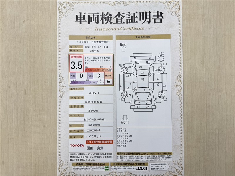 ※ 「修復歴あり」の場合、修復部位の詳細につきましては、販売店へお問い合わせください。