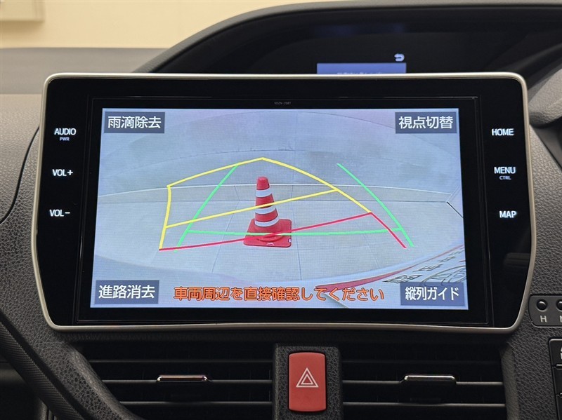 バックガイドモニター付きです。車の後方に小型カメラが付いており、バックする際の後方の様子をモニター上に表示します。