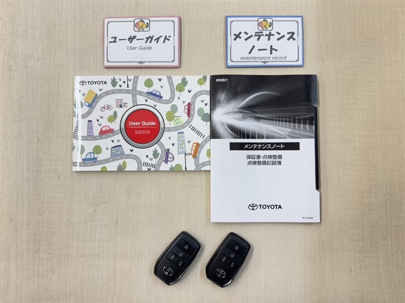 基本操作はもちろん、最近の車は装備もどんどん進化しているので困った時に役立つユーザーガイド、整備歴が確認できるメンテナンスノートが付いてます。安心ですね☆☆