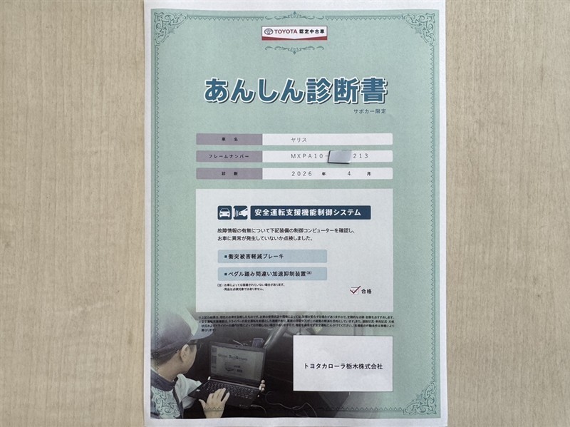 トヨタ自動車が認定した検査員が、厳正に検査した車両検査証明書を発行しています。キズの程度や場所を展開図で分かりやすく表示しているのでおクルマの状態がすぐ分かります。