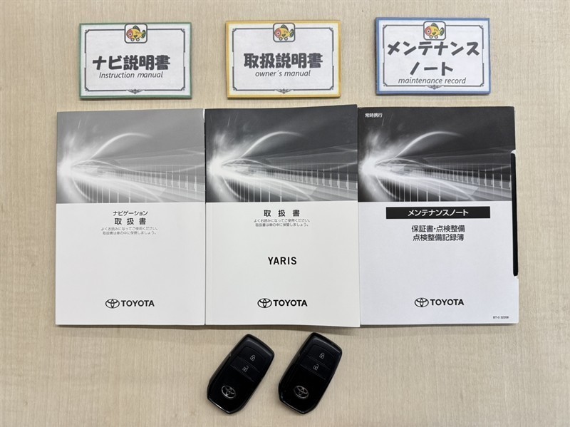基本操作はもちろん、最近の車は装備もどんどん進化しているので困った時に役立つ取扱説明書、整備歴が確認できるメンテナンスノートが付いてます。安心ですね☆☆