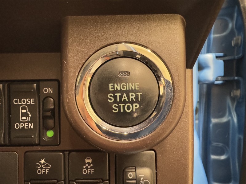 エンジンスタートボタンです。キーが車内にあれば、エンジンの始動・停止はブレーキを踏んでスイッチを押すだけ!キーを取り出す手間を省き、ワンプッシュでエンジンを操作するので簡単でスムーズです。