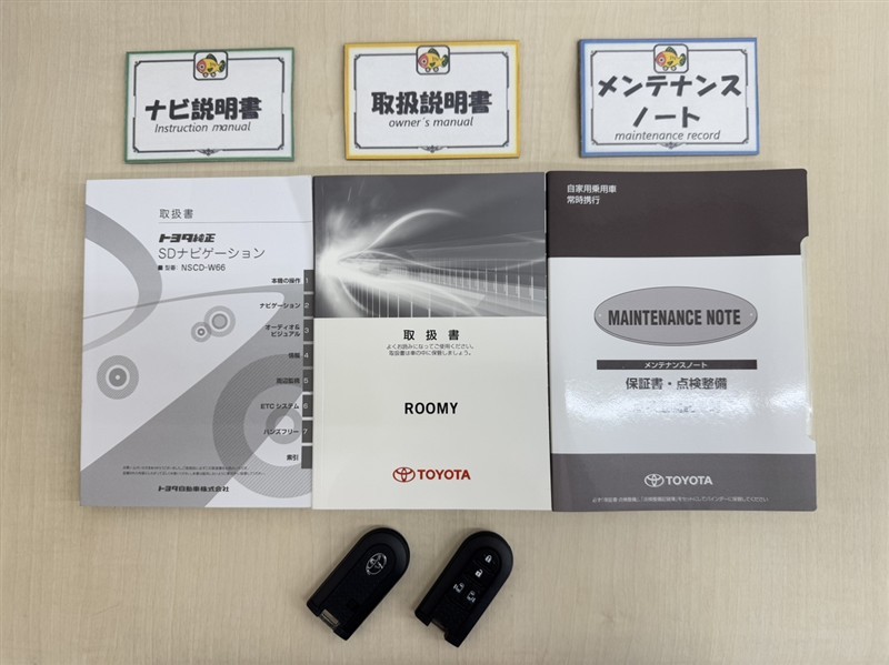 基本操作はもちろん、最近の車は装備もどんどん進化しているので困った時に役立つ取扱説明書、整備歴が確認できるメンテナンスノートが付いてます。安心ですね☆☆