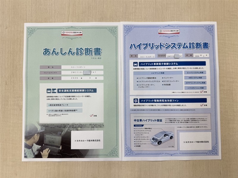 「サポカーあんしん診断」「ハイブリットシステム診断」実施済み。安心安全にお乗り頂けるようトヨタ専用診断機器で綿密にシステムを点検しています。
