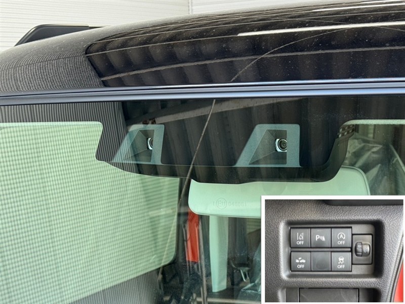 衝突被害軽減ブレーキに加え、ペダル踏み間違い急発進抑制装置等を搭載した「サポカーS」です。安全機能の詳細はスタッフまでおたずねください。機能を過信せず、必ずご自身で安全運転を行ってください。