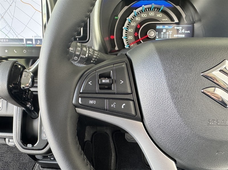 左側ステアリングスイッチです。オーディオ操作・電話を受ける、切るなどの操作が出来ます。