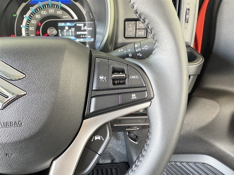 右側ステアリングスイッチです。一定速度の走行をアシストしてくれるクルーズコントロール付き。お好みの速度を設定すれば、アクセルを踏まずに速度を保って走行してくれます。高速道路などの走行に便利です。