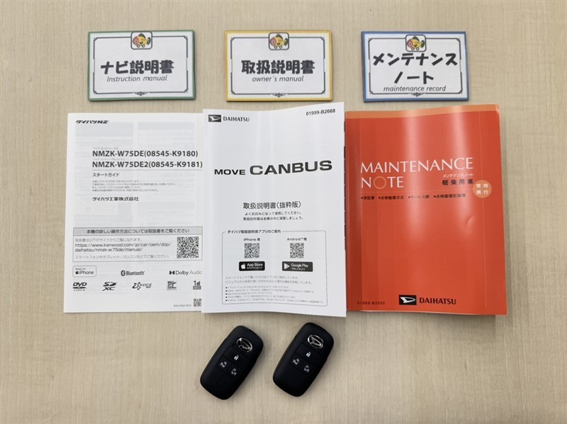 基本操作はもちろん、最近の車は装備もどんどん進化しているので困った時に役立つ取扱説明書、整備歴が確認できるメンテナンスノートが付いてます。安心ですね☆☆
