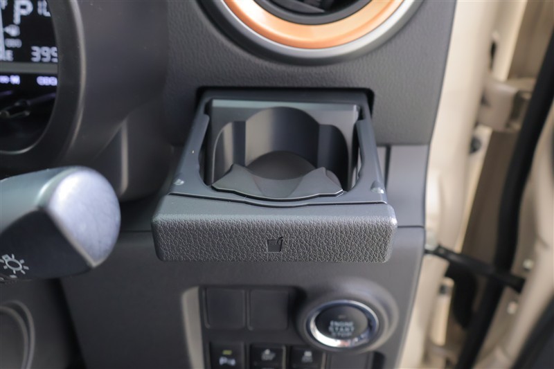 格納式のドリンクホルダー付きです。ドリンクホルダーとしてはもちろん、スマホや長財布を収納することだってできますよ。
